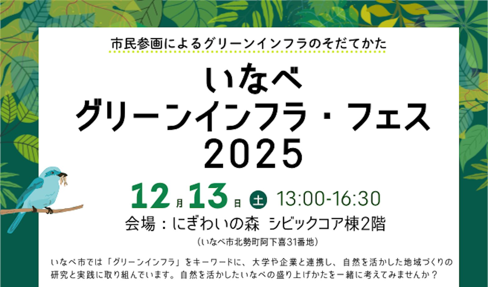 三重県いなべ市は、みどりを活かした商業施設や自然と触れ合えるキャンプ場の整備、自然環境を学ぶ野外イベントといった、自然の多様な機能を活用する「グリーンインフラ」の考え方を取り入れた場所が数多くあります。グリーンインフラとは、森林の涼しさ、雨水を貯める、自然と触れ合う楽しさといった自然の恵みを活用したインフラで、同時に生態系や野生動物の保全や、伝統文化の保護・再生にも貢献します。このように、いなべ市では、グリーンインフラと捉えられる、自然を活かした様々な取組が行われています。